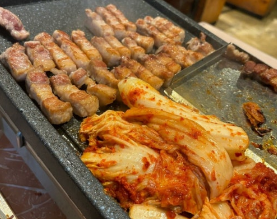 - 생삼겹 또는 냉동삼겹을 불판에 구워 겉은 노릇노릇하게, 속은 촉촉하게