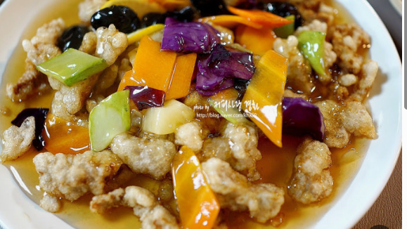 • 찹쌀탕수육: 찹쌀가루를 이용해 더욱 쫀득한 식감을 냅니다.